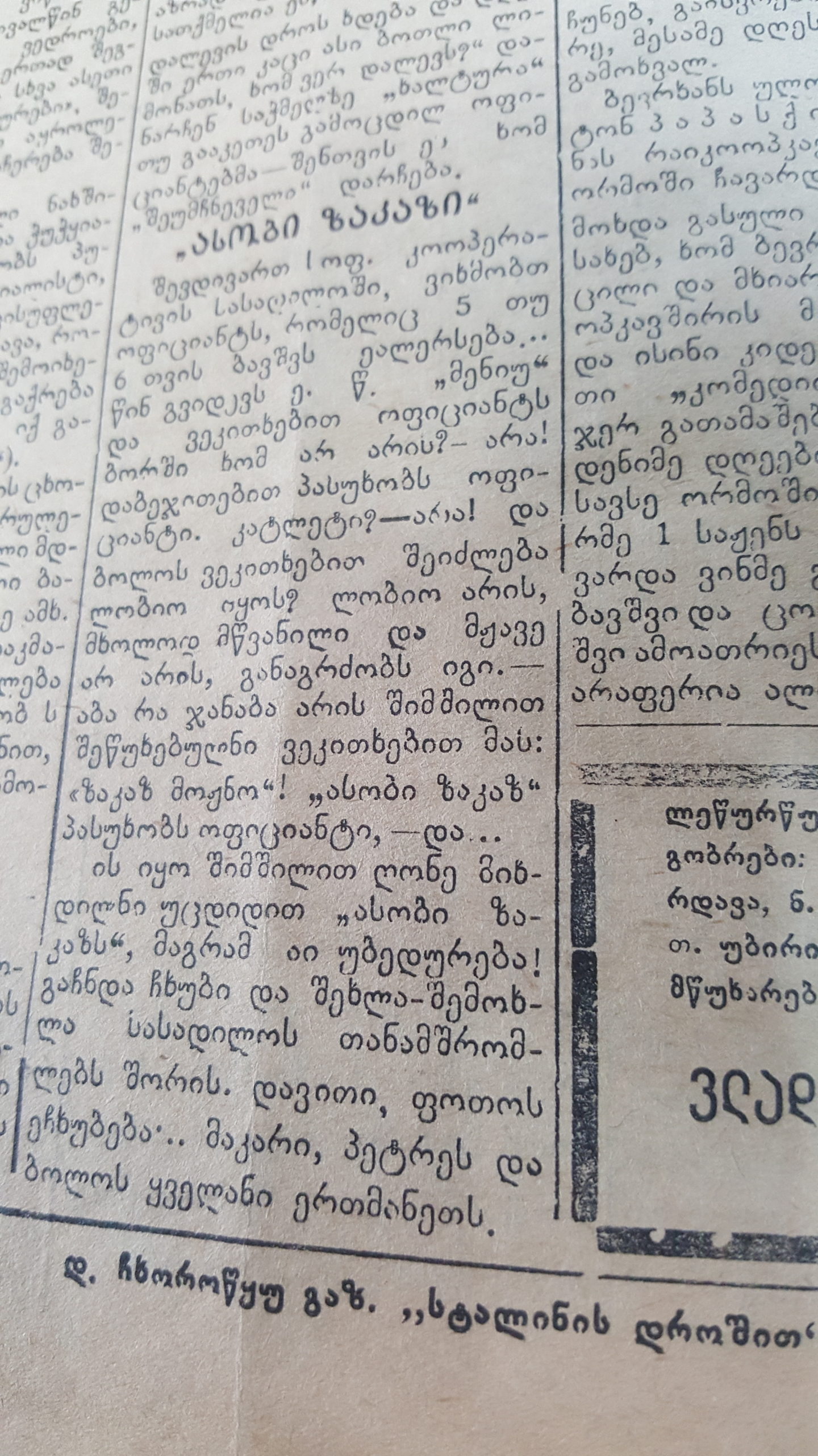 თავიდანვე მოგვიტევეთ ცუდი ხარისხი, რადგან გაზეთების ფურცლების გარდა სურათების უმრავლესობა აღარ მოიძიება . კარგი იქნება უხუცესების ან ისტორიით დაინტერესებულთა გამოხმაურება . ისტორიას უფრო გავაცოცხლებთ