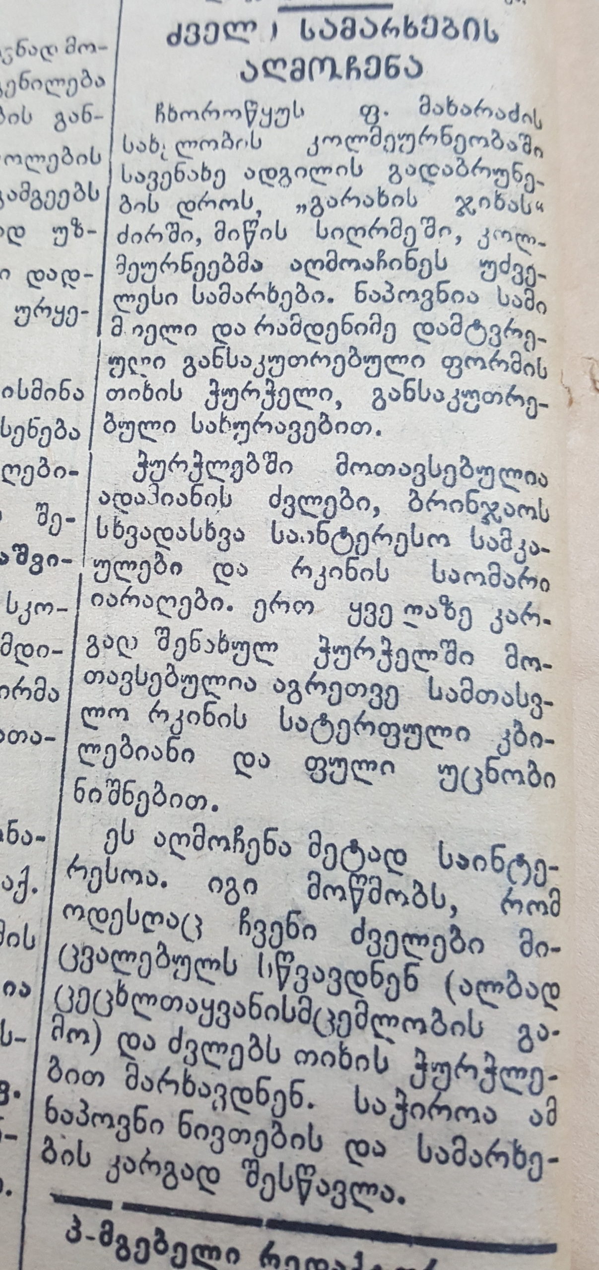 ქვევრ-სამარხების აღმოჩენა 30-ნი წლების ბოლოს. გაზეთი “სტალინის დროშით”