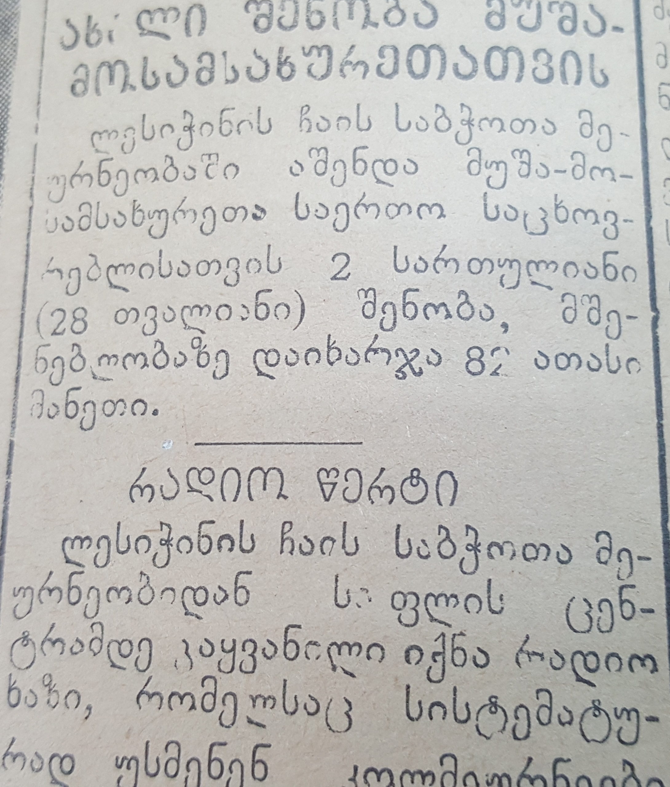 ლესიჭინეში მუშათა საერთო საცხოვრებელი აშენდა, გამოყვანილ იქნა რადიოს ხაზი