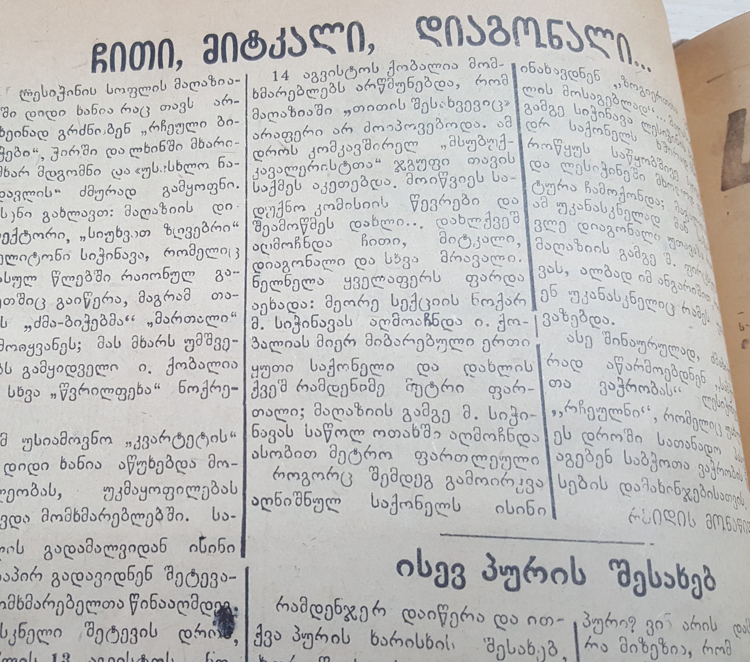 ამჯერად დარტყმის ქვეშ ლესიჭინელი გამყიდველი მელიტონ სიჭინავა აღმოჩნდა, რომელსაც კომსომოლის აქტივისტები ეწვივნენ